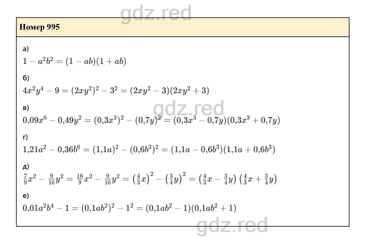 Решение упражнения 995 из учебника по алгебре для 7 класса Макарычева