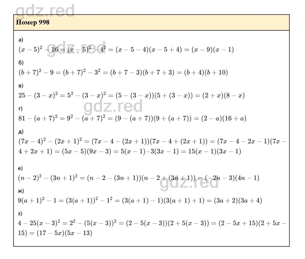 Решение упражнения 998 из учебника по алгебре для 7 класса Макарычева