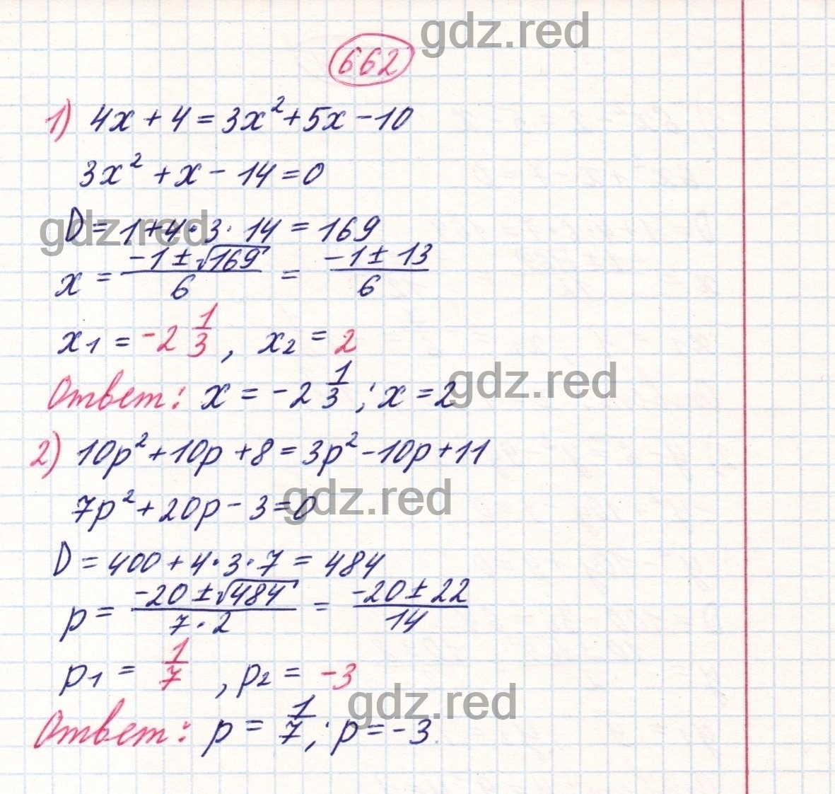 На этой странице рассмотрим все ответы на Номер 662 из учебника по алгебре 8 класс Мерзляк