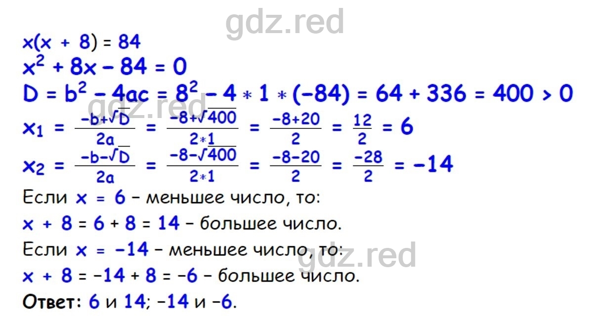 667. Произведение двух чисел равно 84. Найдите эти числа, если одно из них на 8 меньше другого.