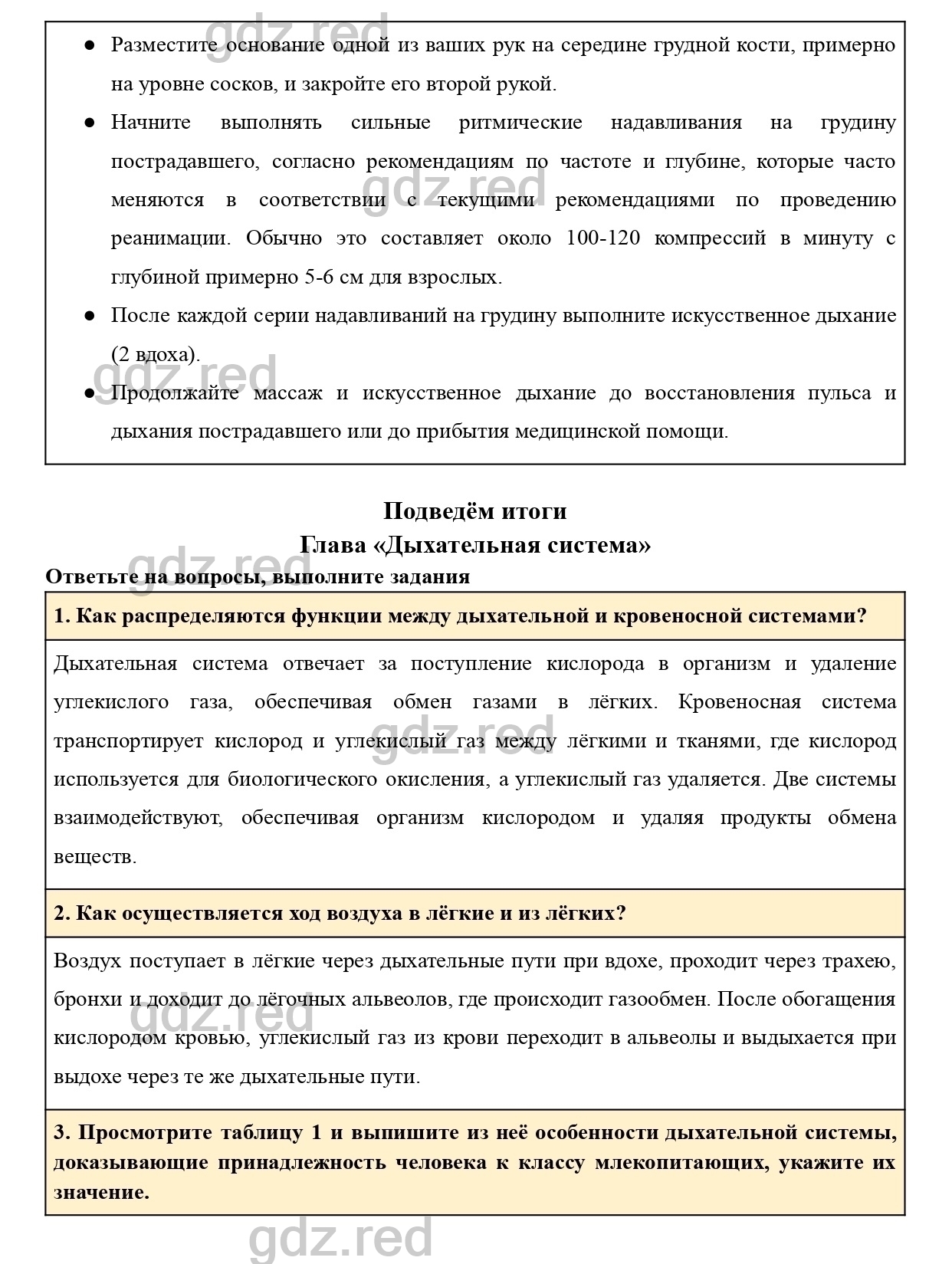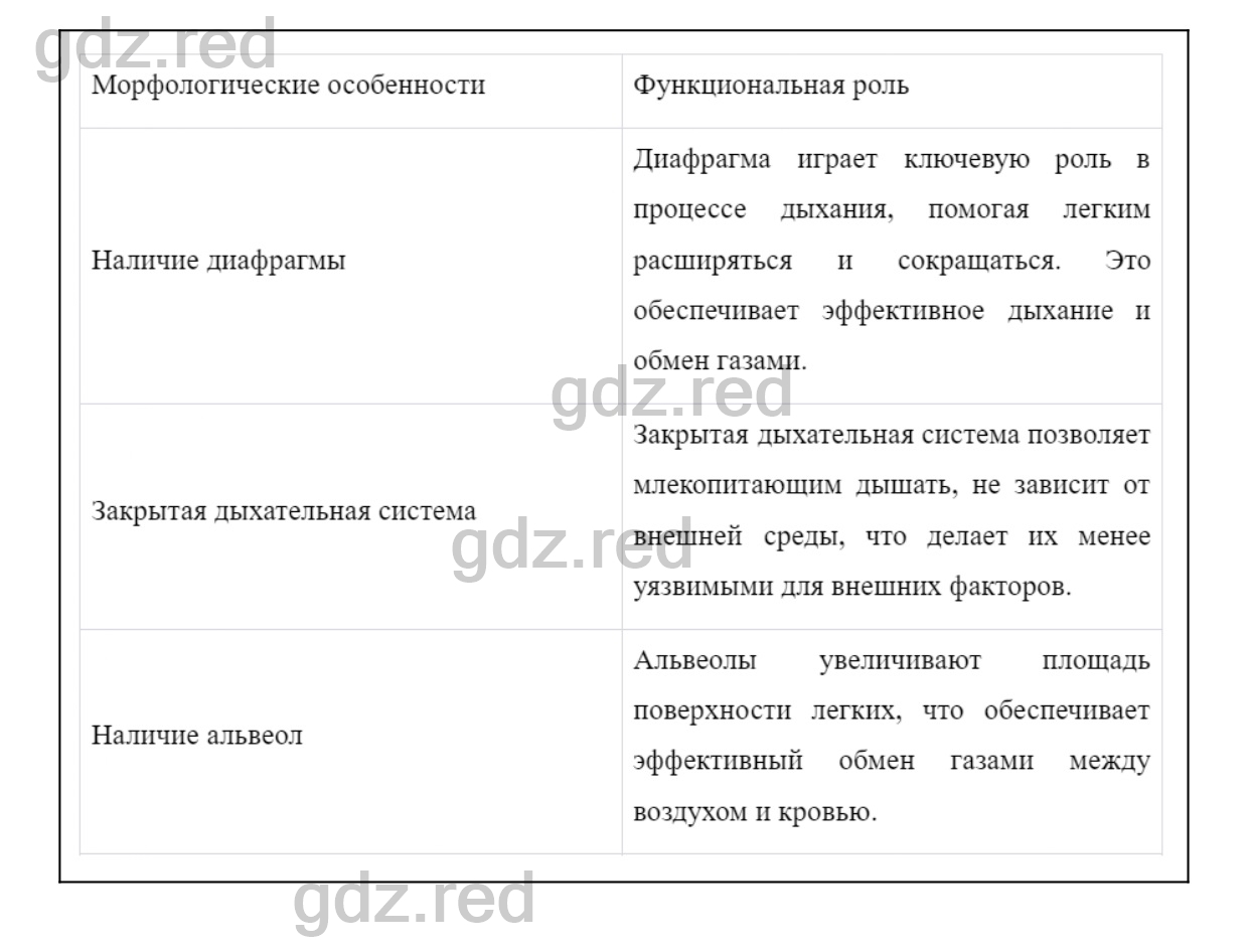 3. Просмотрите таблицу 1 и выпишите из неё особенности дыхательной системы, доказывающие принадлежность человека к классу млекопитающих, укажите их значение.