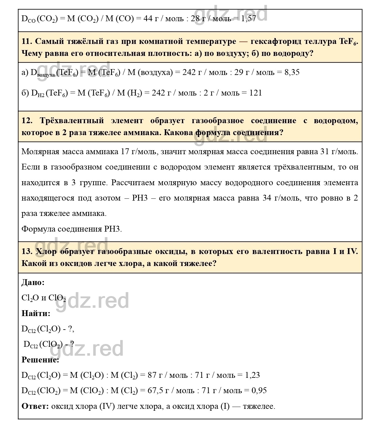 11. Самый тяжёлый газ при комнатной температуре ― гексафторид теллура TeF6. Чему равна его относительная плотность: а) по воздуху; б) по водороду?